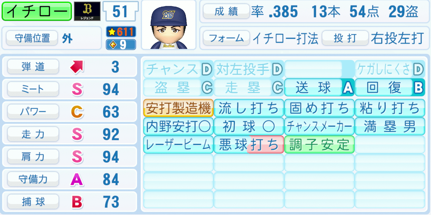 【画像】イチロー全盛期時代のゲーム能力値が限界突破wこれ誰が勝てるんだよ